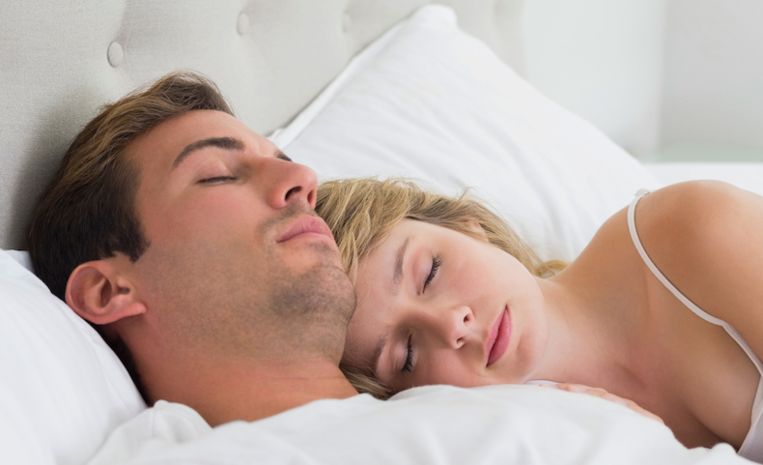 op elkaar liggen in bed.