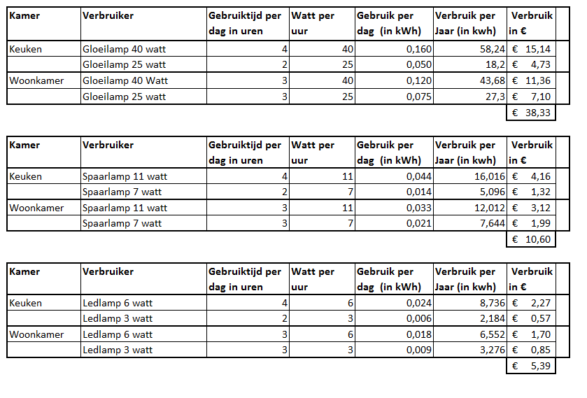 verbruik led lamp berekenen.